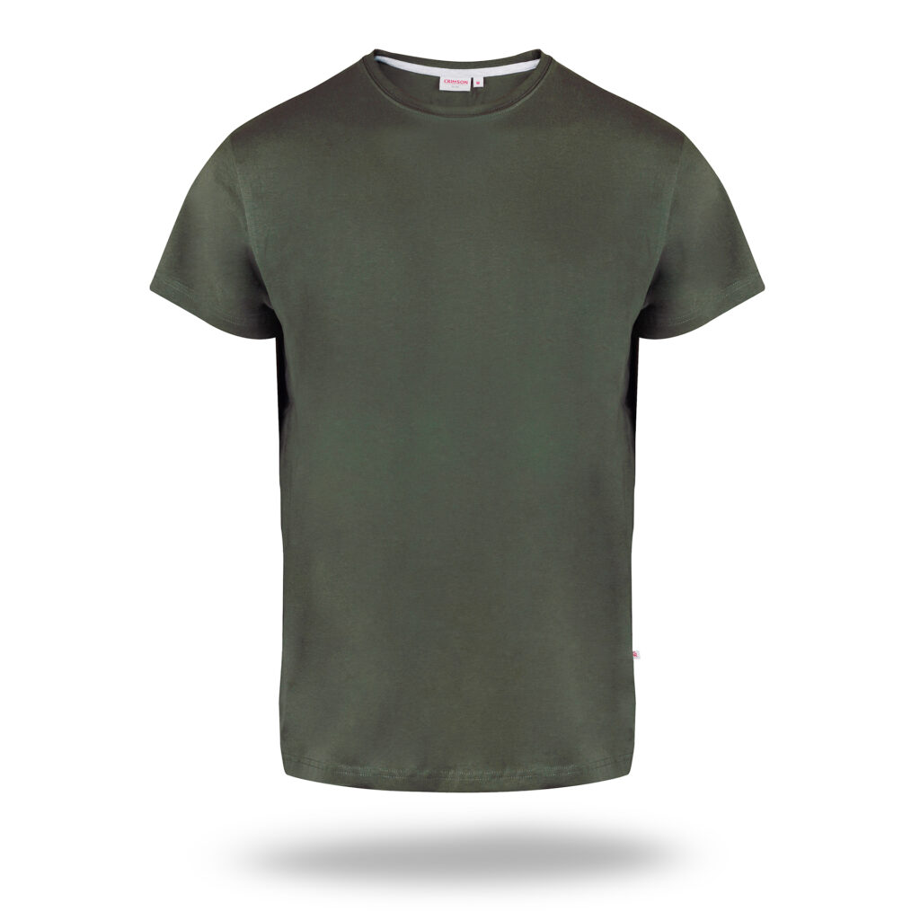 t-shirt męski z krótkim rękawem wykonany z elastycznej dzianiny single jersey; lekko dopasowany fason; bawełna organiczna ; materiał poddany praniu enzymatycznemu, dzięki czemu jest pozbawiony nierówności ; wykończenie silikonowe materiału powodujące że jest miękki i miły w dotyku; dekolt wykończony dwuwarstwowym ściągaczem z elastanem zapewniającym dłuższą trwałość ; taśma wzmacniająca na karku w kontrastowym kolorze; ramiona z taśmą wzmacniającą i stabilizującą, która pozytywnie wpływa na trwałość szwów ; boczne szwy; podwójne, gęste szwy do których wykorzystano nici najwyższej jakości 95% wysokogatunkowa bawełna czesana ring-spun, 5% Elastan