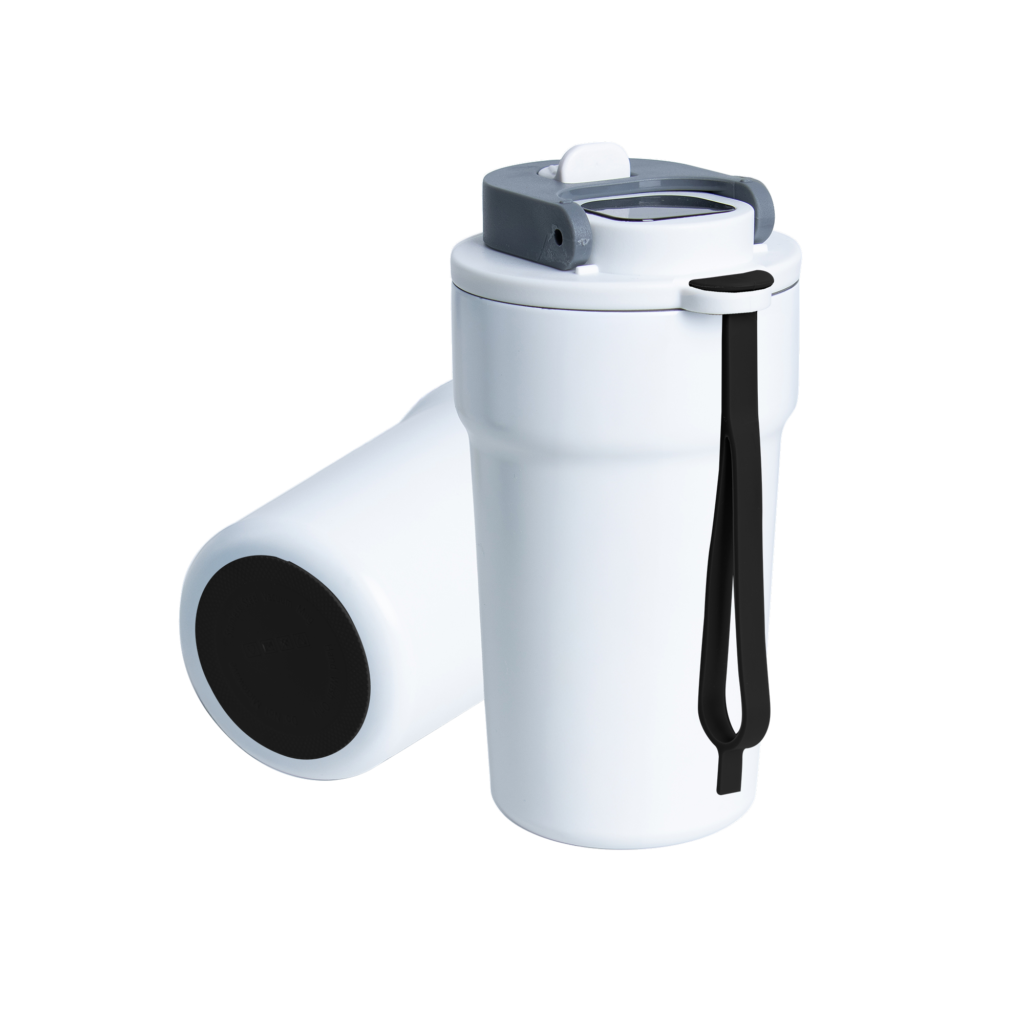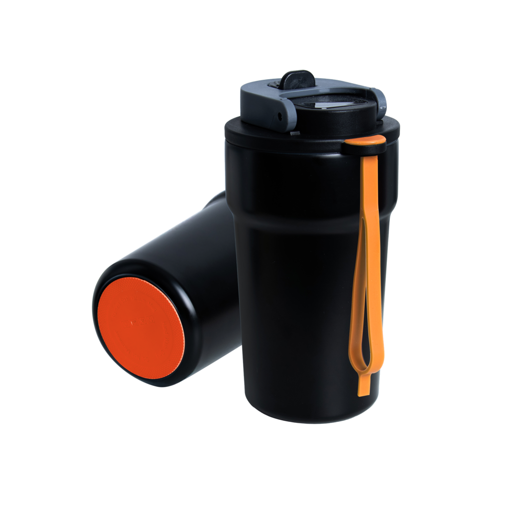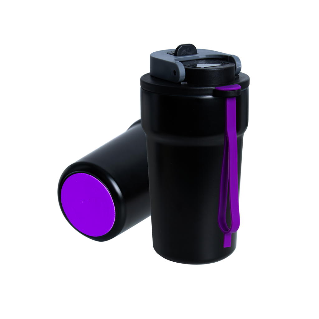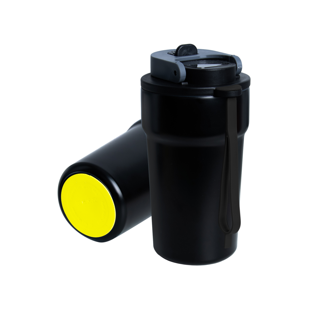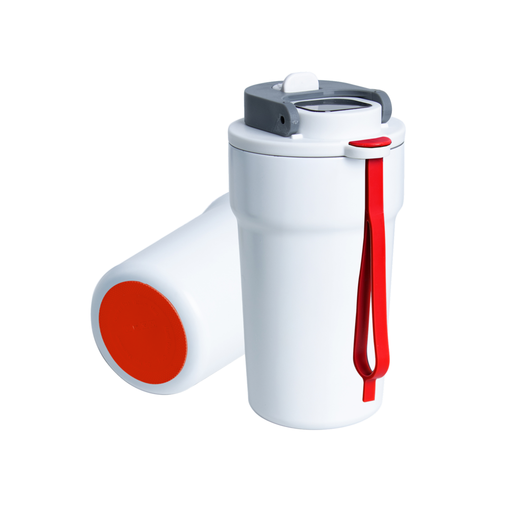 Dzięki technologii „chameleon” oferuje aż 192 unikalne kombinacje kolorystyczne – niezależny wybór koloru opaski silikonowej i podstawy antypoślizgowej przy czarnym korpusie, co pozwala idealnie dopasować kubek do Twojego stylu, firmy czy kampanii.