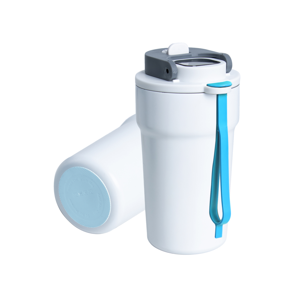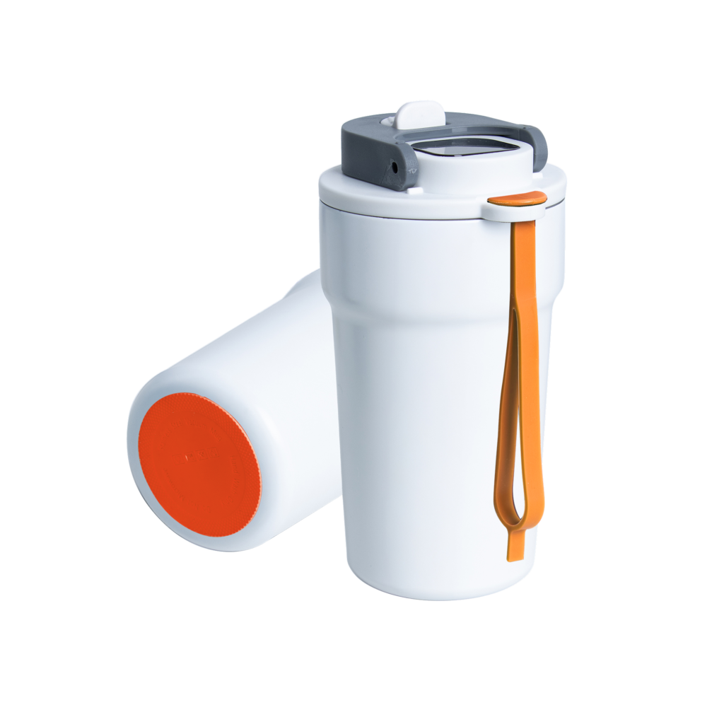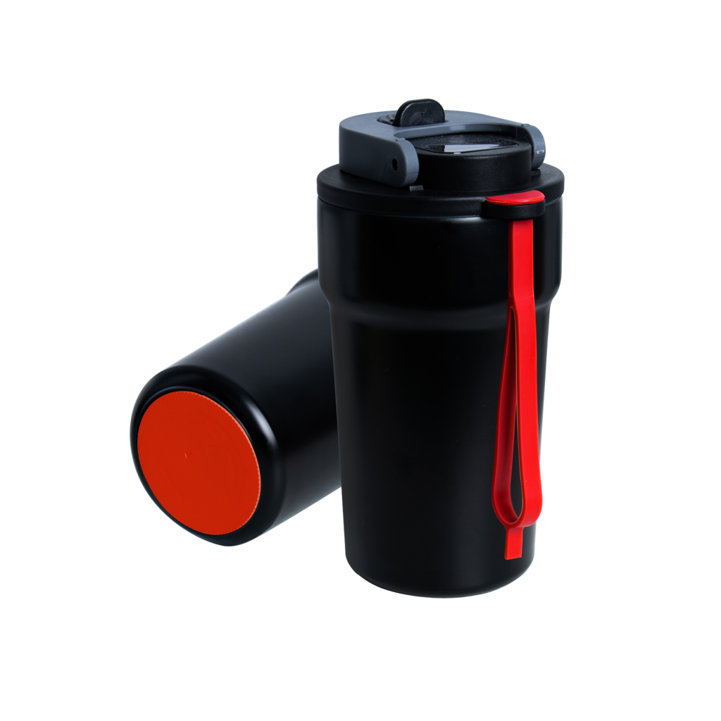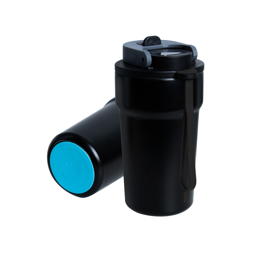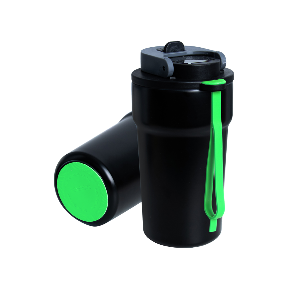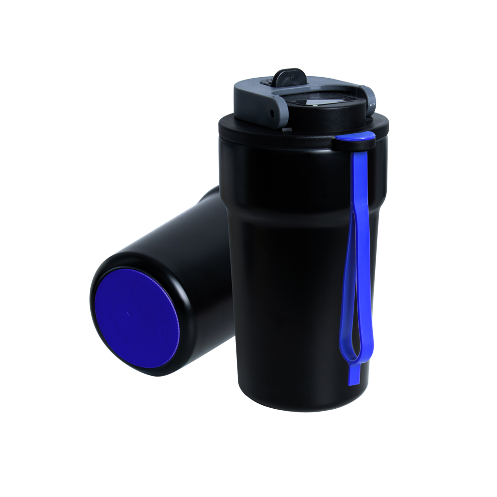 Dzięki technologii „chameleon” oferuje aż 192 unikalne kombinacje kolorystyczne – niezależny wybór koloru opaski silikonowej i podstawy antypoślizgowej przy czarnym korpusie, co pozwala idealnie dopasować kubek do Twojego stylu, firmy czy kampanii.