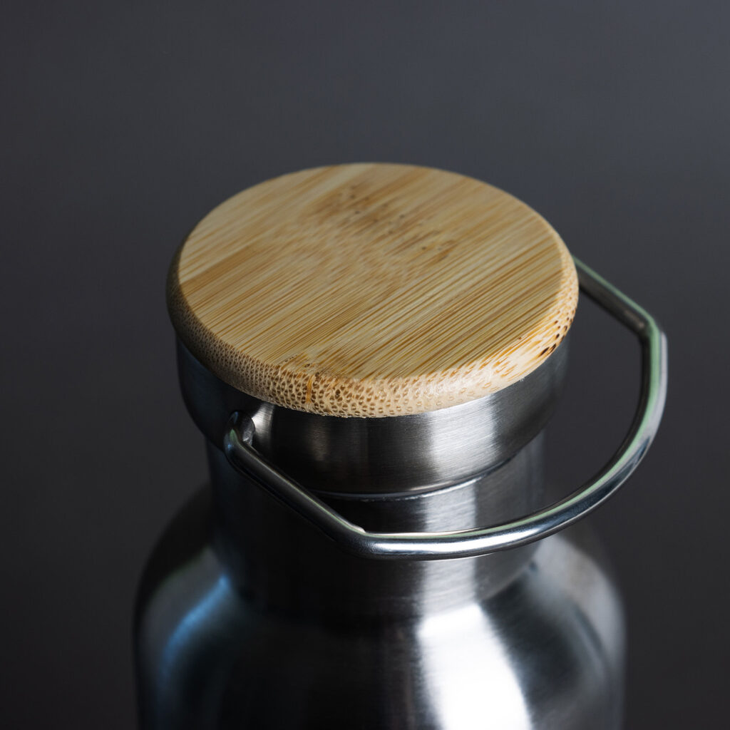 Termobutelka z logo Melania – ekologiczna stalowa butelka termiczna z drewnianą osłoną i personalizacją