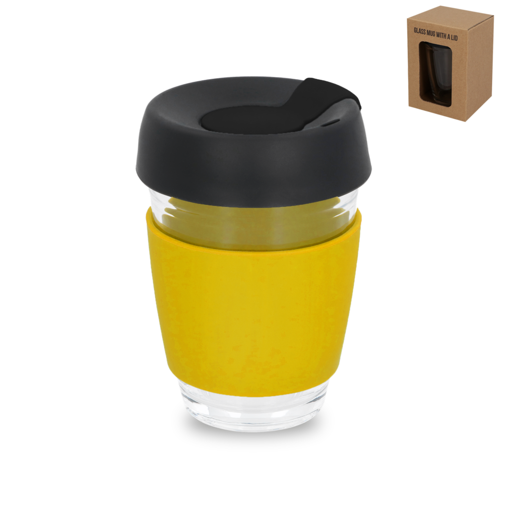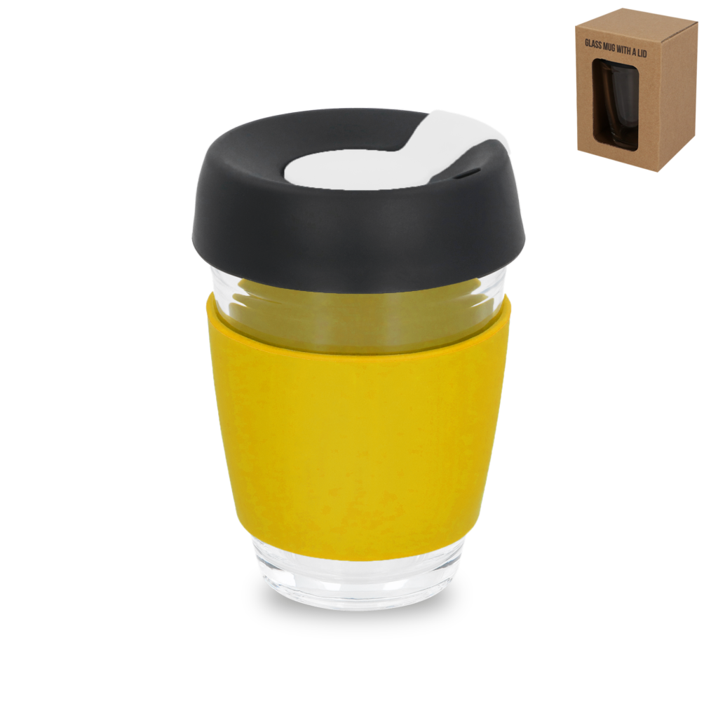 Poznaj szklankę z własnym nadrukiem Caroline – stylową i niezwykle praktyczną szklaną szklankę stworzoną dla osób w ciągłym ruchu. Wykonana z wysokiej jakości szkła z błyszczącą powierzchnią, wyposażona w szczelną pokrywkę typu „To Go” z zaworem bezpieczeństwa oraz miękkim, kolorowym silikonowym kołnierzem. Dostępna w kilku atrakcyjnych wariantach kolorystycznych akcentów (m.in. żółty, pomarańczowy, czerwony i inne).